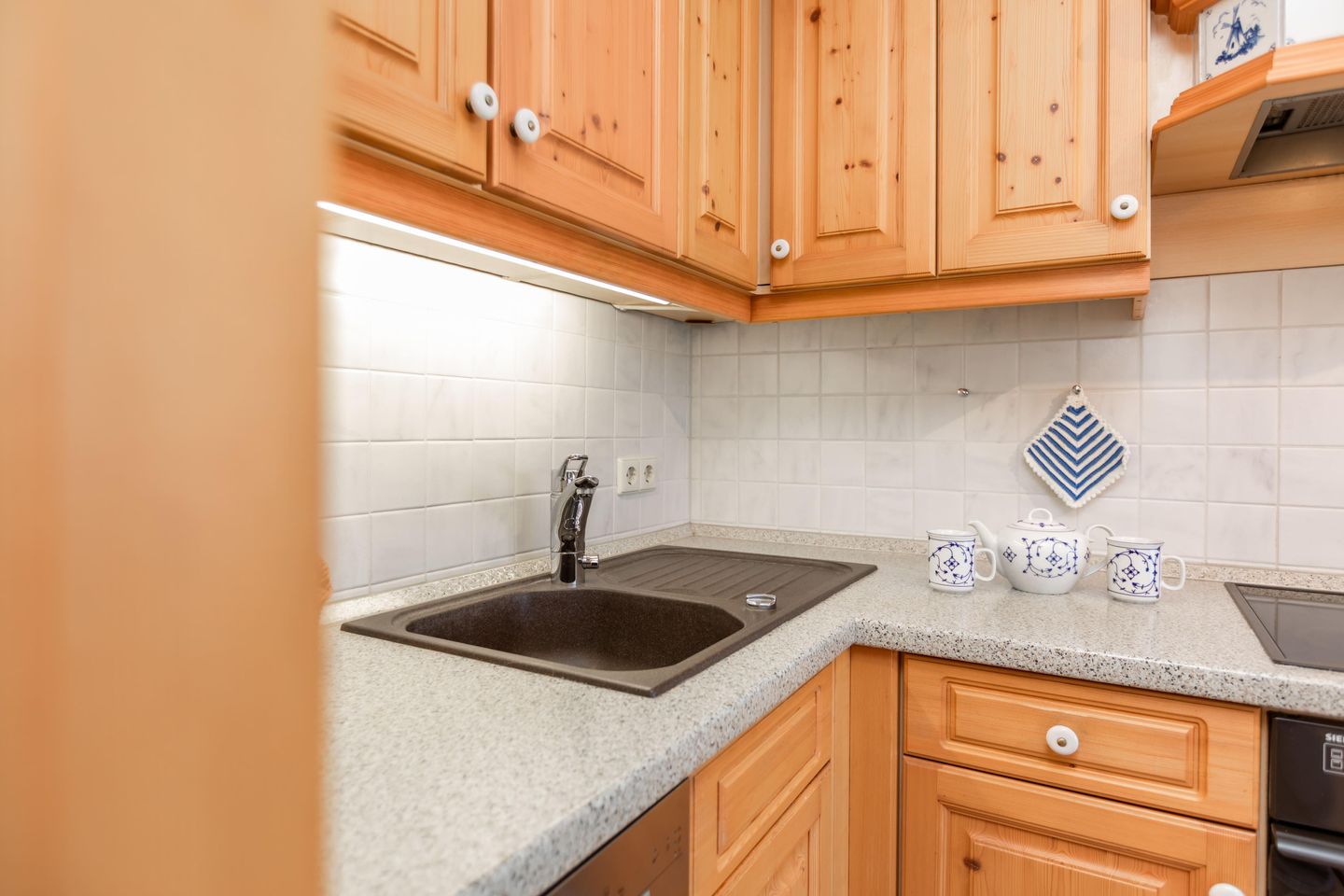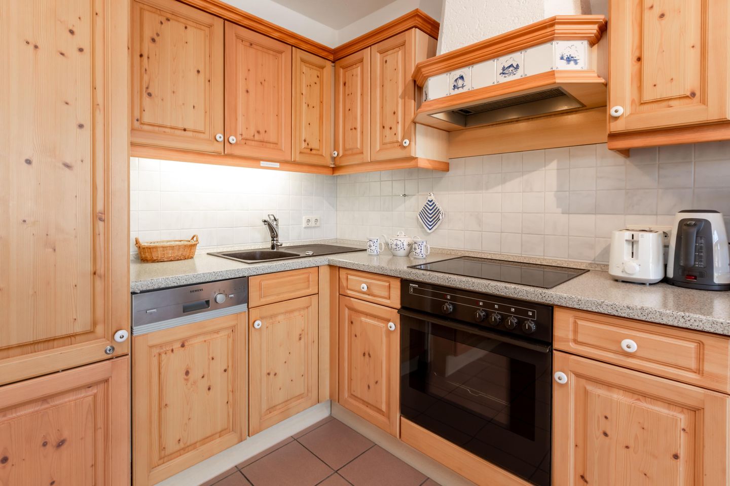 • Voll ausgestattete Küche mit allem, was Sie zum Kochen benötigen: Cerankochfeld, Backofen, Kühlschrank, Gefrierfach, Mikrowelle, Spülmaschine, Kaffeemaschine, Wasserkocher, Toaster und vieles mehr.
