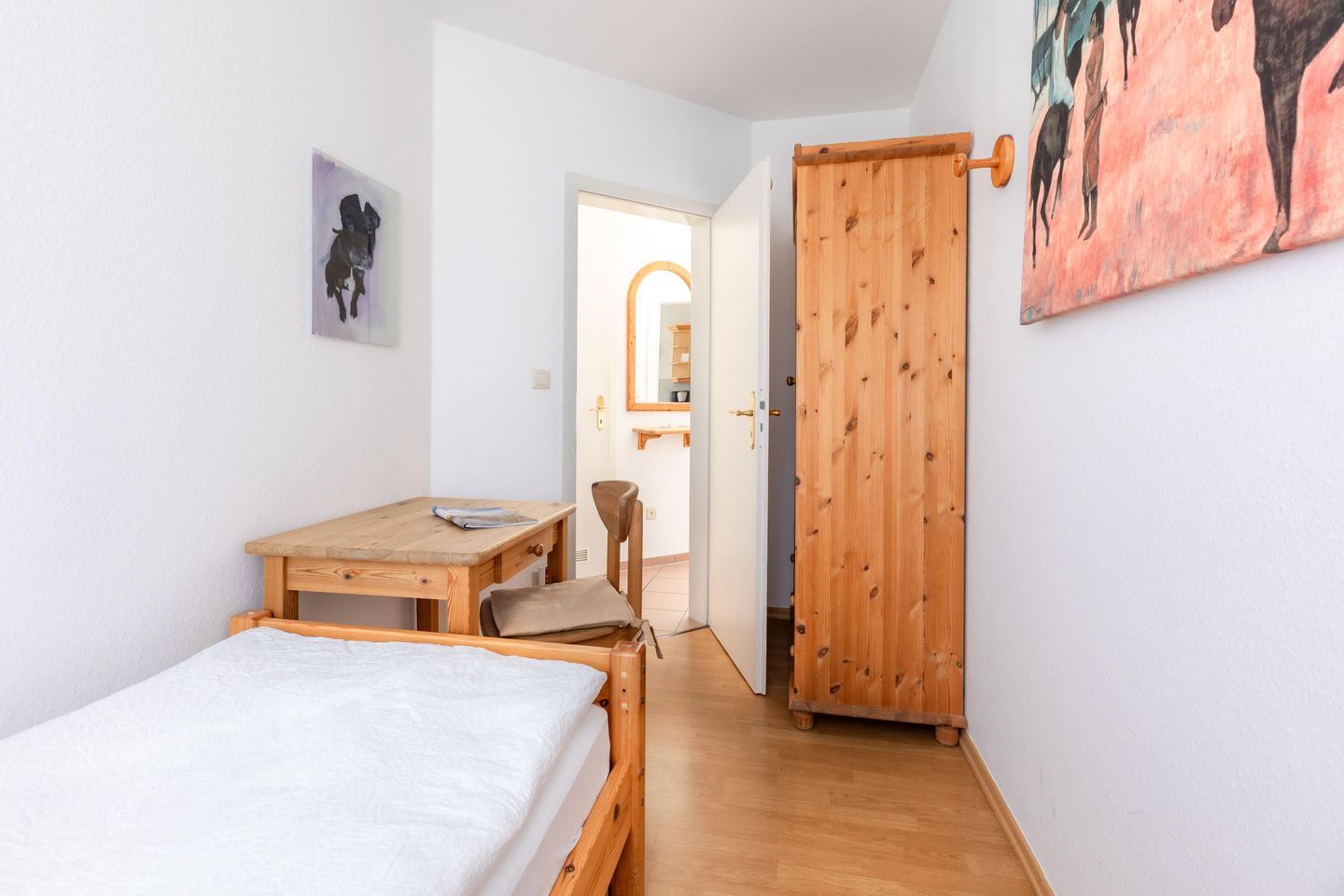 • Zwei Schlafzimmer: Ein Schlafzimmer mit einem Doppelbett sowie ein weiteres Schlafzimmer mit einem Einzelbett – ideal für Paare oder kleine Familien.