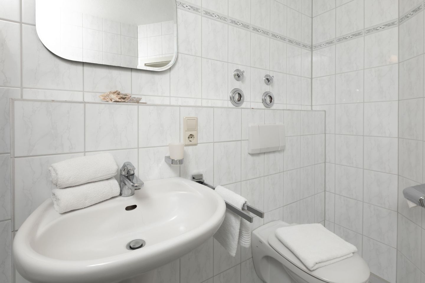 • Badezimmer mit Dusche, WC, Waschbecken und Haartrockner – ideal, um sich nach einem Tag an der frischen Nordseeluft zu erfrischen.